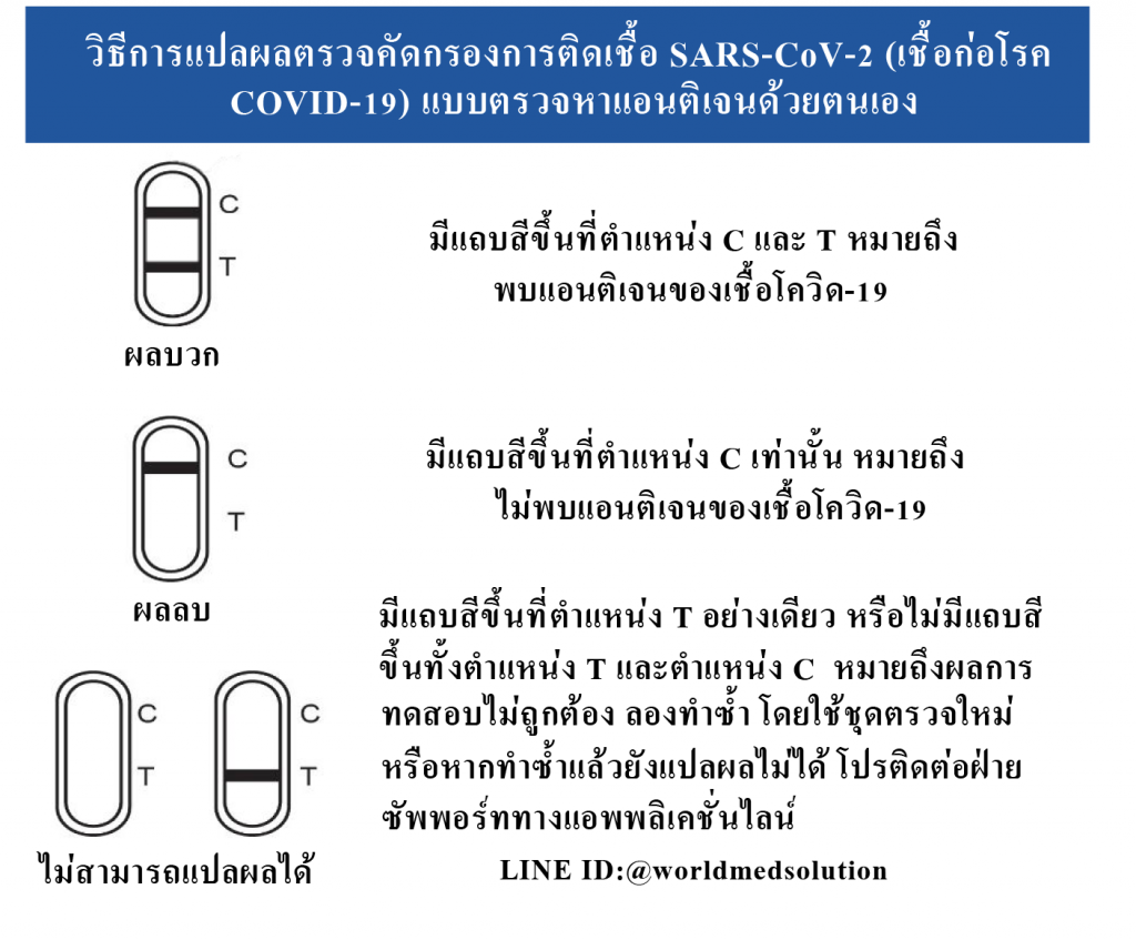บริษัทให้ความสำคัญกับการดูแลทุกท่านและให้ความสำคัญกับคุณภาพเป็นอย่างยิ่ง หากสินค้าที่ท่านได้รับไม่อยู่ในบรรจุภัณฑ์ที่สมบูรณ์หรือไม่แสดงผลทั้ง 2 ขีด ท่านสามารถแจ้งต่อฝ่ายบริการลูกค้า ที่@worldmedsolution พ้อมแนบหลักฐานทางเรายินดีประสานงานเพื่อจัดส่งสินค้าใหม่ให้ท่านในลำดับต่อไป