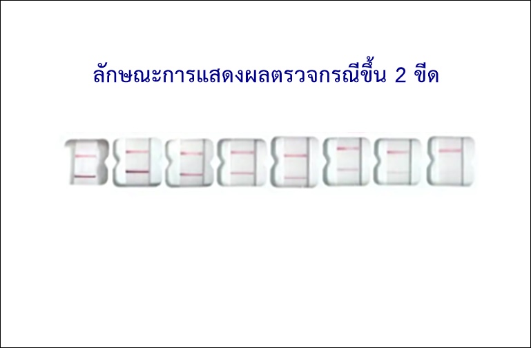 จากข้อมูลที่พบ การขึ้น 2ขีด มีได้ถึง 8 ลักษณะด้วยกัน โดยจะมีทั้งแบบ จางด้านบน เข้มด้านล่าง จางทั้งสองขีด และ ไม่เข้มหนึ่งขีด จางหนึ่งขีด ทั้งยังมีเรื่องของสีที่แสดงด้วยตั้งแต่ สีขาว คือไม่มีสีเลย สีแดง สีม่วง และ สี ชมพูอ่อนๆดังภาพ ผู้เชี่ยวชาญจาก FDA ระบุความเห็นเกี่ยวกับผลตรวจลักษณะเหล่านี้ ไว้ว่า “ไม่ว่าขีดล่างจะจาง จะเป็นสีม่วง สีแดงอ่อน หรือสีชมพู จางๆ ก็แปลว่า ผลเป็น POSITIVE หรือ ติดเชื้อนั่นเอง “