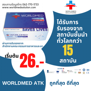 ผู้นำการให้บริการจัดจำหน่าย อุปกรณ์การแพทย์ อาหารเสริม ชุดตรวจ ATK ราคาส่ง มีประสบการณ์การให้บริการธุรกิจอุปกรณ์การแพทย์ และอาหารเสริมอย่างยาวนาน ทีมงาน Worldmed Solution ยินดีเป็นส่วนหนึ่งที่จะรับใช้คุณ ช่วยให้คุณมีสุขภาพร่างกายและคุณภาพชีวิตที่ดีขึ้น ด้วยผลิตภัณฑ์ที่ผ่านการคัดสรรมาอย่างดี ด้่วยความใส่ใจดูเเลทุกรายละเอียด เพื่อให้คุณมั่นใจว่าจะได้รับการ บริการที่เหนือกว่า สัมผัสความประทับใจในทุกการบริการของเรา