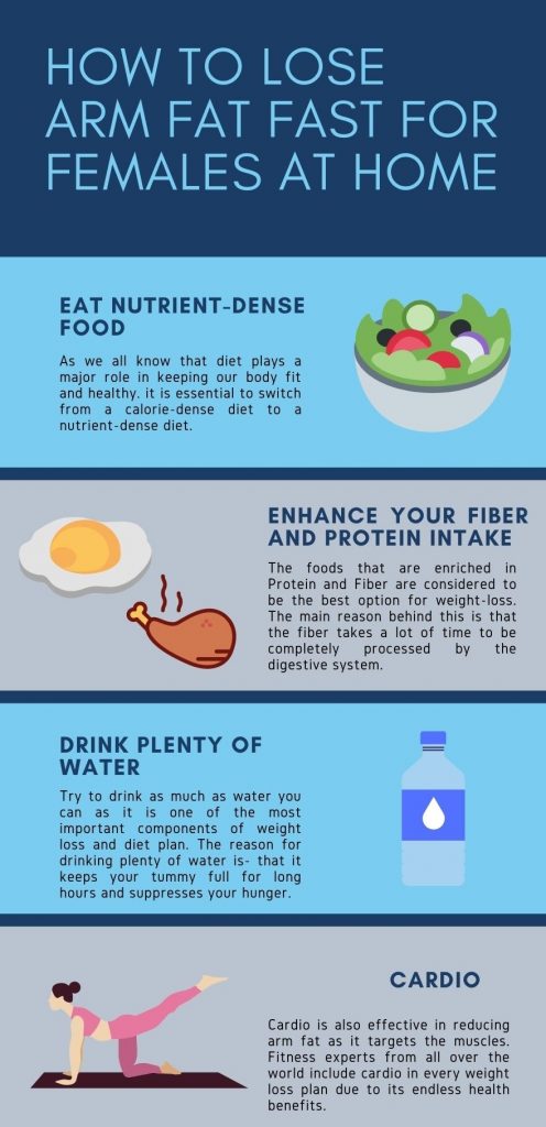 2.อาหารพลังงานต่ำและไฟเบอร์ : ไฟเบอร์หรือเส้นใยในอาหารจะช่วยให้เราอิ่มท้องนานขึ้นลดอาการท้องผูกและลดการสะสมของไขมันส่วนเกินมากขึ้น มีงานวิจัยที่ระบุว่าหากเรากินเส้นใยอาหารมากขึ้น 1 กรัม โดยเฉลี่ยเราจะสามารถลดน้ำหนักได้ 0.25 กิโลกรัม ลองคิดตามว่าถ้าหากเรากินเส้นใยอาหารมากขึ้นเราจะสามารถลดน้ำหนักและ ลดต้นแขน ได้มากแค่ไหนกันเชียว อาหารที่มีเส้นใยสูง ๆ ที่อยากแนะนำเลยก็คือ ผัก ผลไม้ ข้าวโอ๊ต พืชตระกูลถั่วและข้าวกล้อง